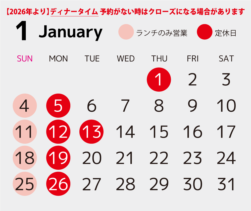 2026年1月の営業は次の通りです 。